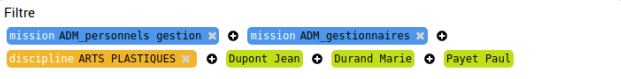 Il est possible de sélectionner des personnes par missions ou par discipline. Ce type de sélection vous permettra de créer des listes dynamiques qui vont s'adapter automatiquement en fonction de l'attribution/suppression des missions et de l'arrivée/départ de personnels dans l'établissement