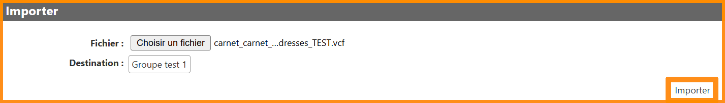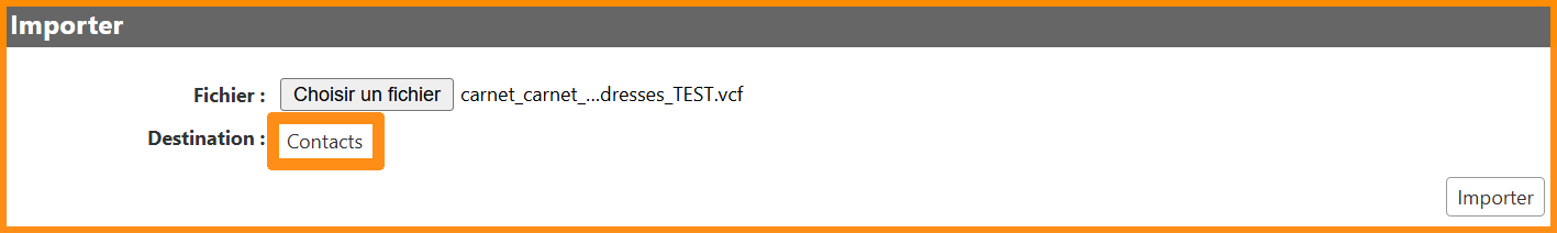 - Sélectionnez l'un des carnets d'adresses ou groupes de contacts exportés depuis