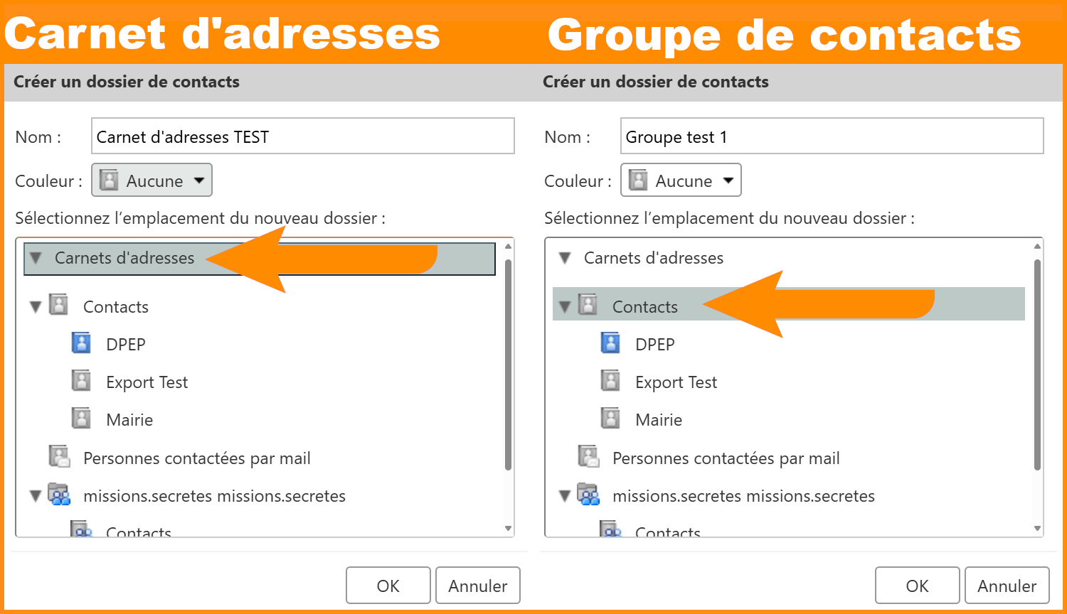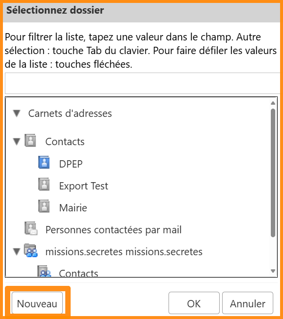 groupe de contacts" : Sélectionnez le carnet d'adresses approprié.