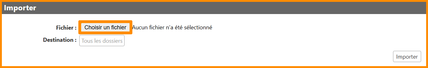- Dans la catégorie Importer, cliquez sur "Choisir un fichier".