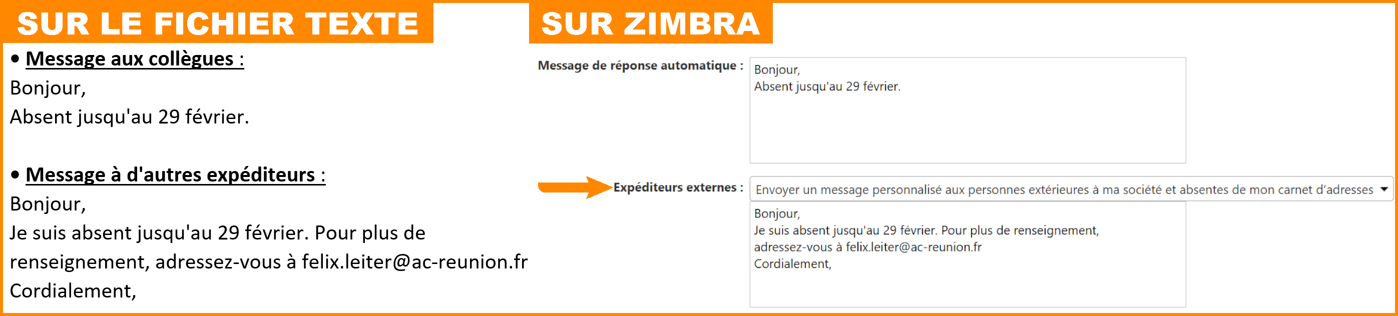 - "Message de réponse automatique " : collez le contenu de « Messages aux collègues ».