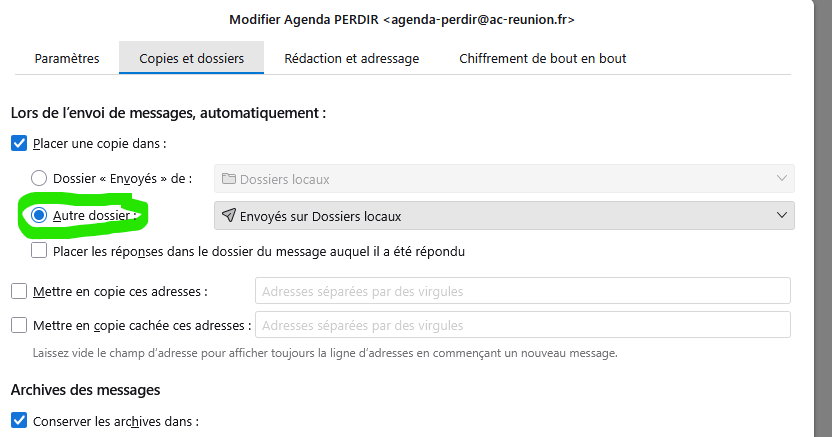 Paramétrer les messages envoyés dans le dossier "envoi" de la boîte partagée