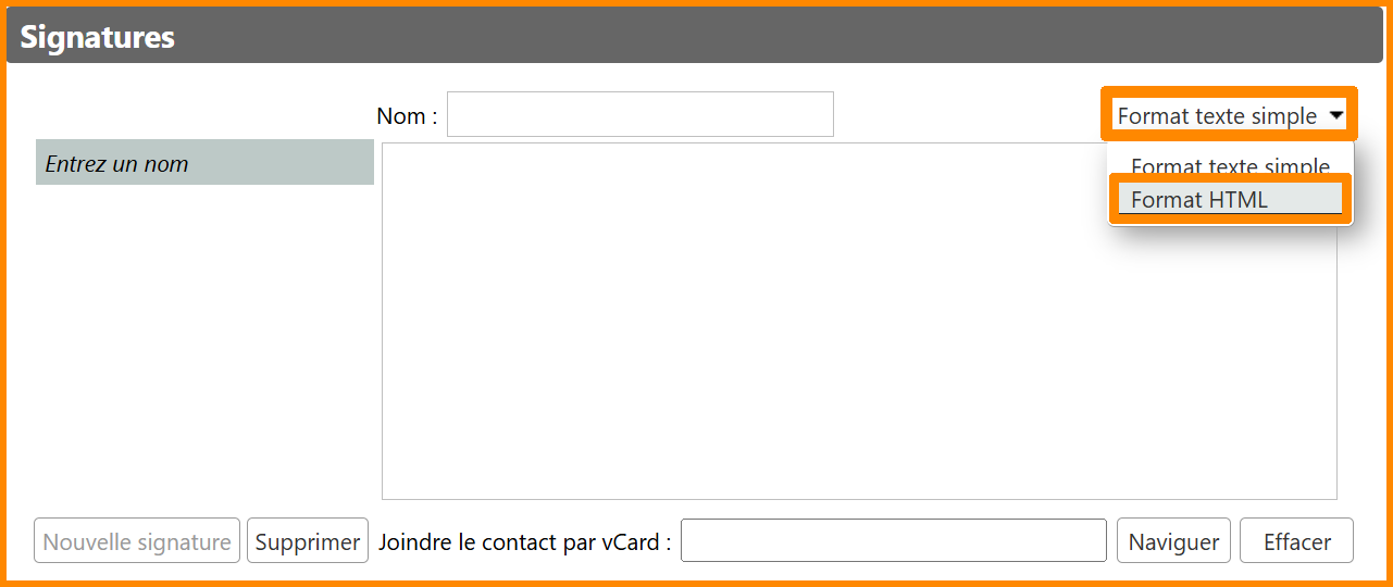 messagerie nationale Zimbra, en haut à droite, cliquez sur "Format texte simple" et sélectionnez "Format HTML".