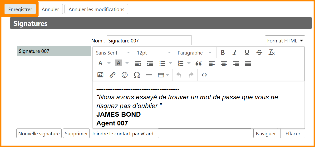 Importer sa signature