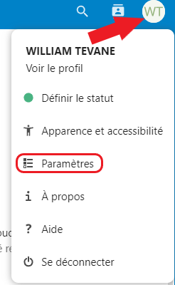 Etape 4 : Cliquer sur l'icône de votre compte puis paramètre.
