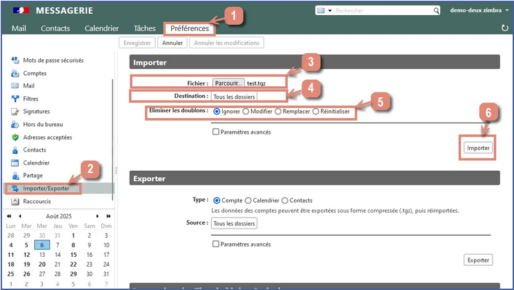 Lorsque vous disposez des droits de membre ou de propriétaire d’une boîte fonctionnelle, il est possible d’y importer directement des données (contacts et calendriers).