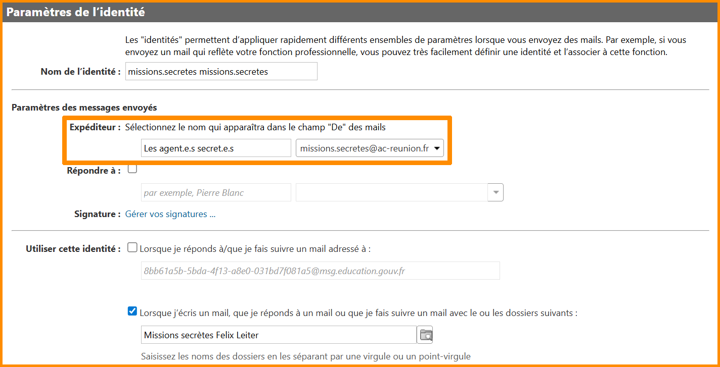 - Dans la catégorie "Paramètres de l'identité", modifiez le champ "Expéditeurs".
