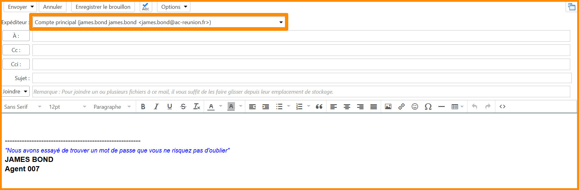 Ce nom sera visible par les destinataires à la réception du mail. Veillez donc à bien le choisir.