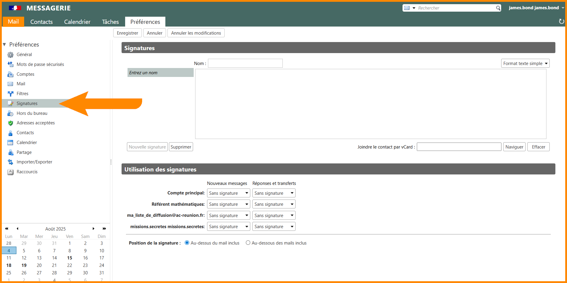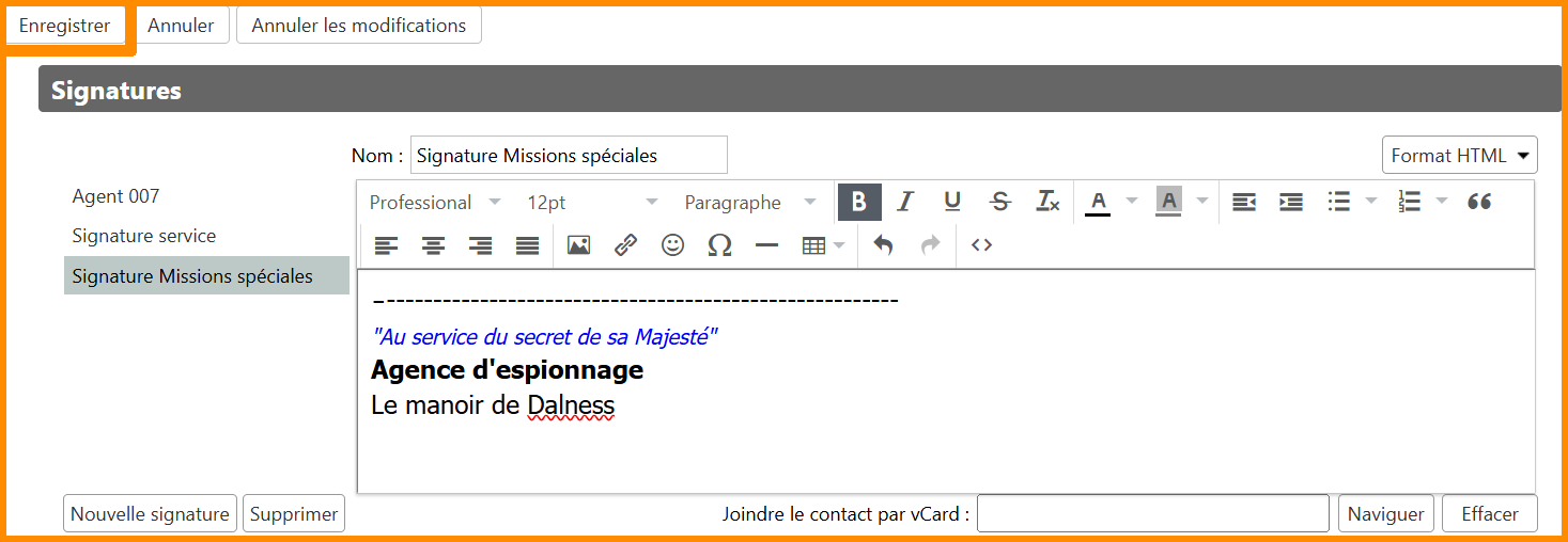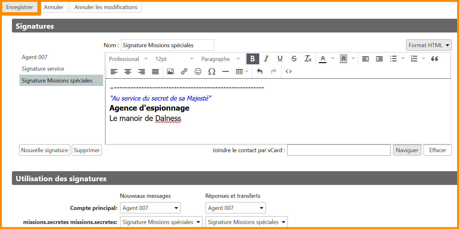 Dans les champs de la signature de vos boîtes fonctionnelles partagées, sélectionnez votre nouvelle signature.