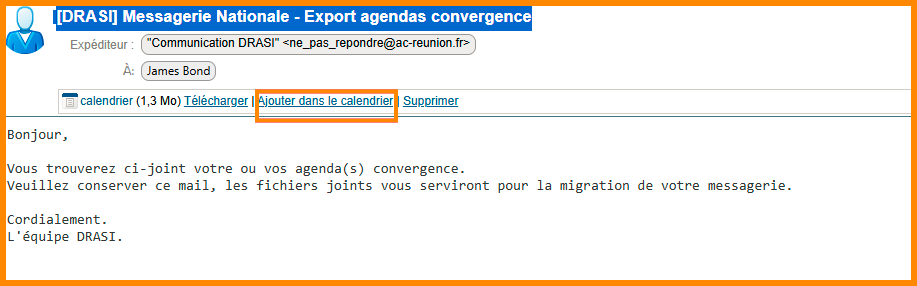 • Le calendrier est transféré dans le dossier "icon_corbeille_poubelle.png Corbeille".