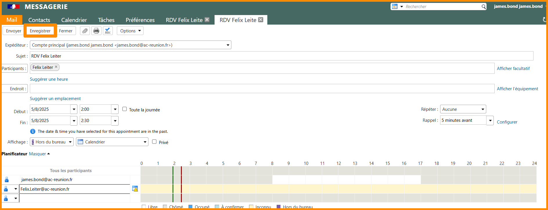 - Faites un clic droit sur le rendez-vous.