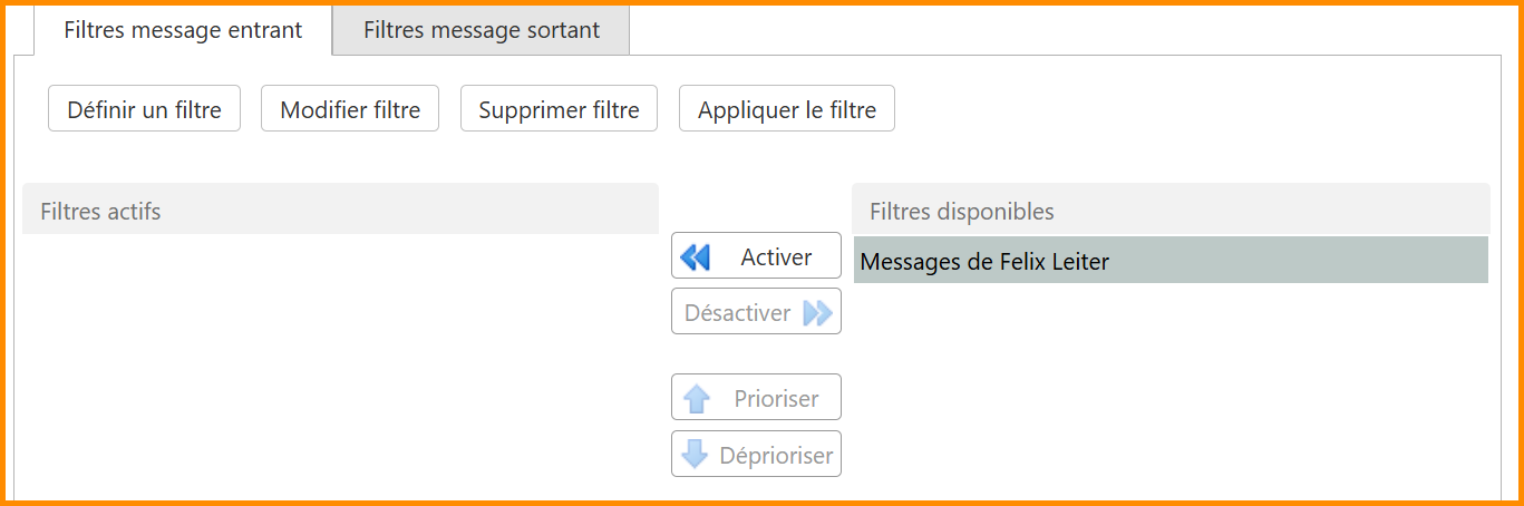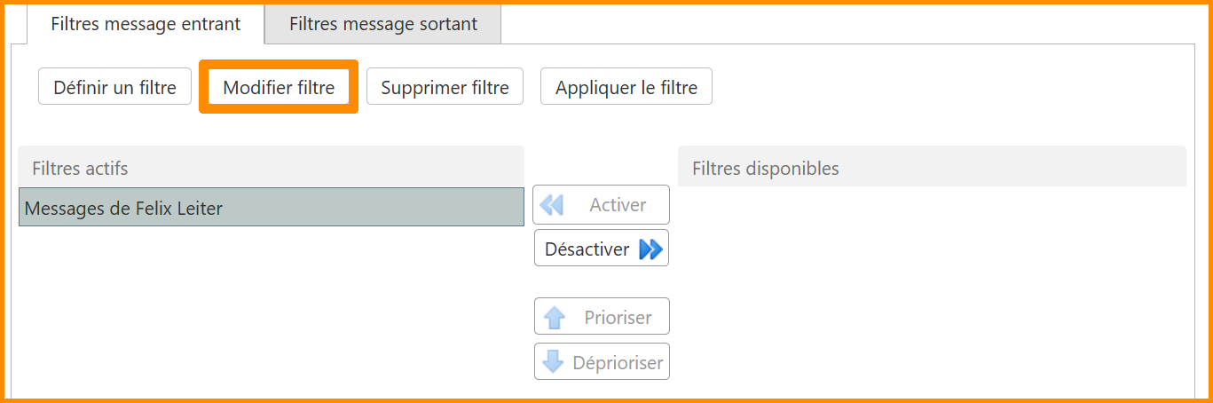 - Prioriser : fait remonter le filtre dans la liste (plus haute priorité).