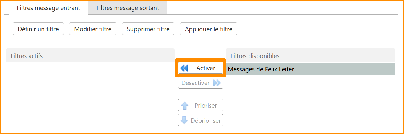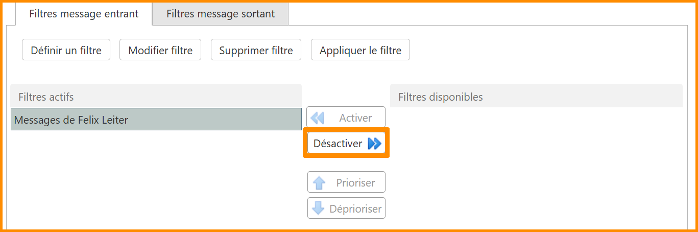 Cliquez sur "Prioriser" ou "Déprioriser" selon la priorité que vous souhaitez attribuer au filtre.