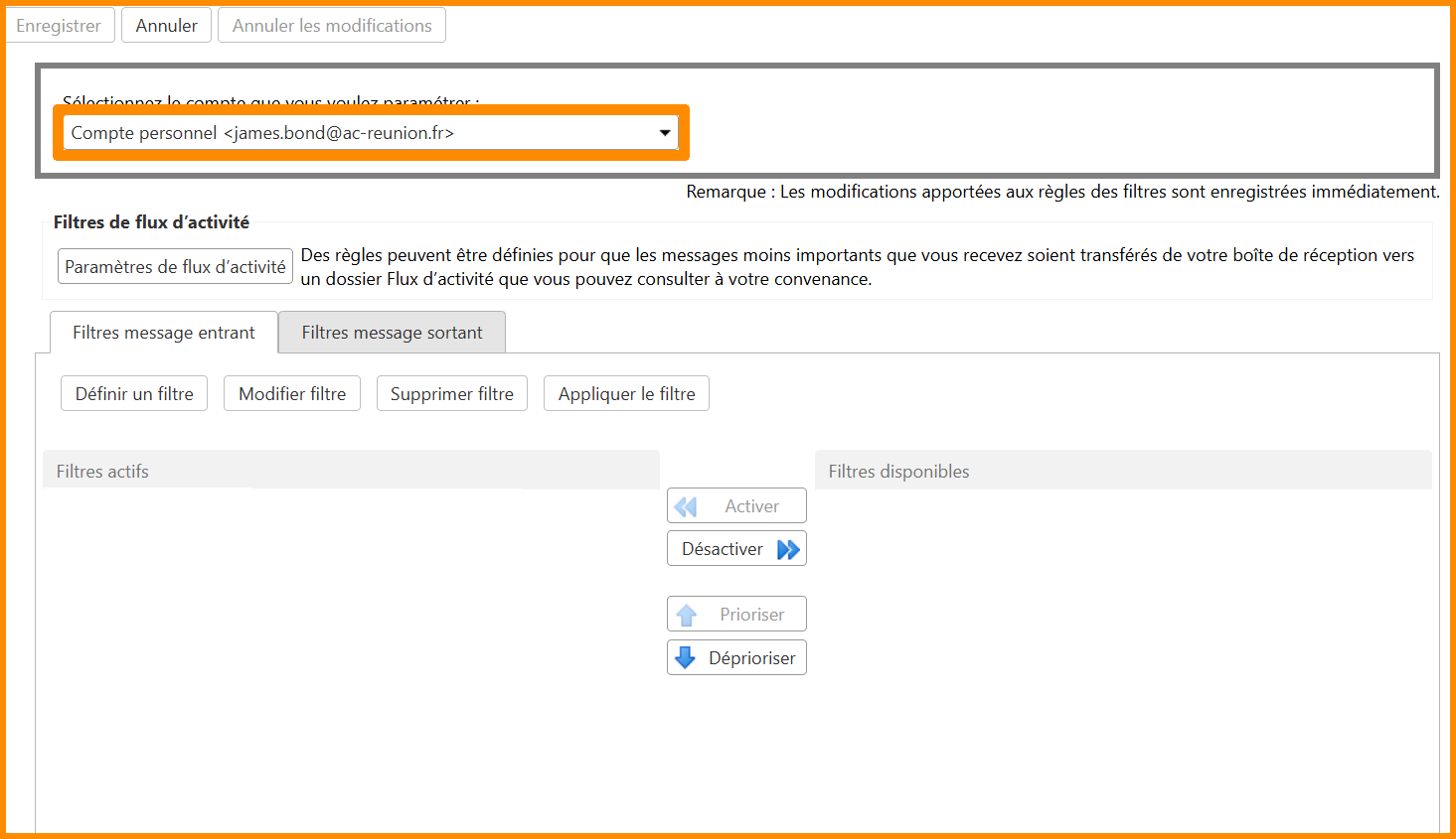 - Vérifiez que le dossier "Flux d'activités" a bien été créé dans votre messagerie.