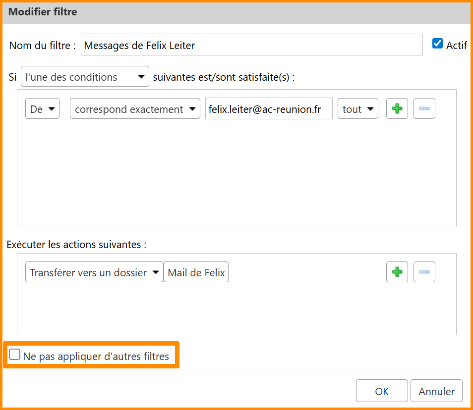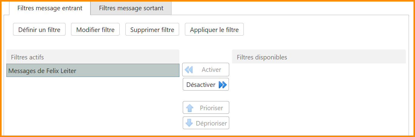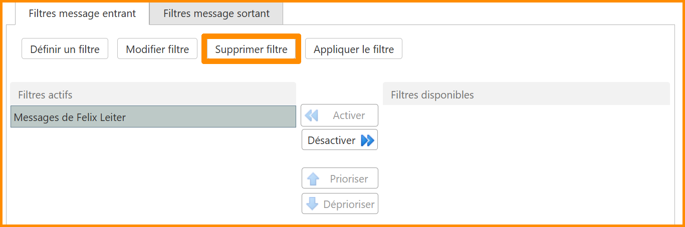 - Déprioriser : fait descendre le filtre dans la liste (priorité plus basse).