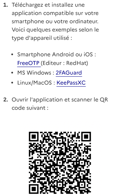 - Des consignes vous seront fournies pour permettre la mise en place de la clé TOTP