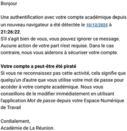 Vous allez recevoir ce mail pendant le processus d’initialisation Si vous êtes à l'origine de ce processus pour se connecter depuis l'étranger vous n'avez rien à craindre