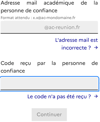 Lors de la première utilisation, saisissez l'adresse mail d'un partenaire de confiance (collègue ou boîte fonctionnelle à laquelle vous avez accès facilement)