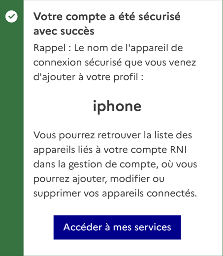 - Si toutes les étapes précédentes ont bien été réalisées, un message de succès s'affichera