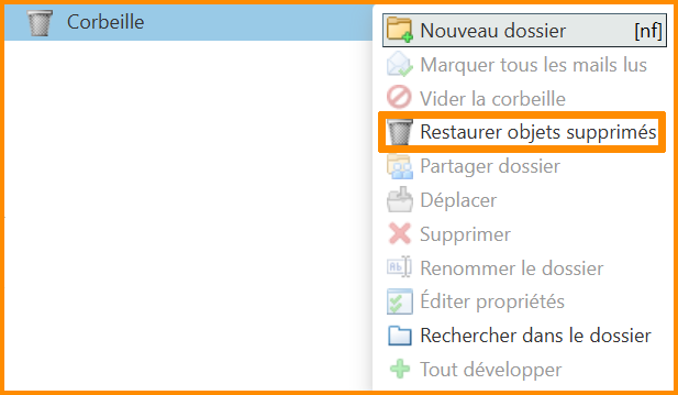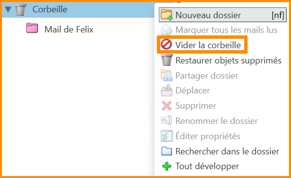 - Faites un clic droit sur le dossier de mails à supprimer.