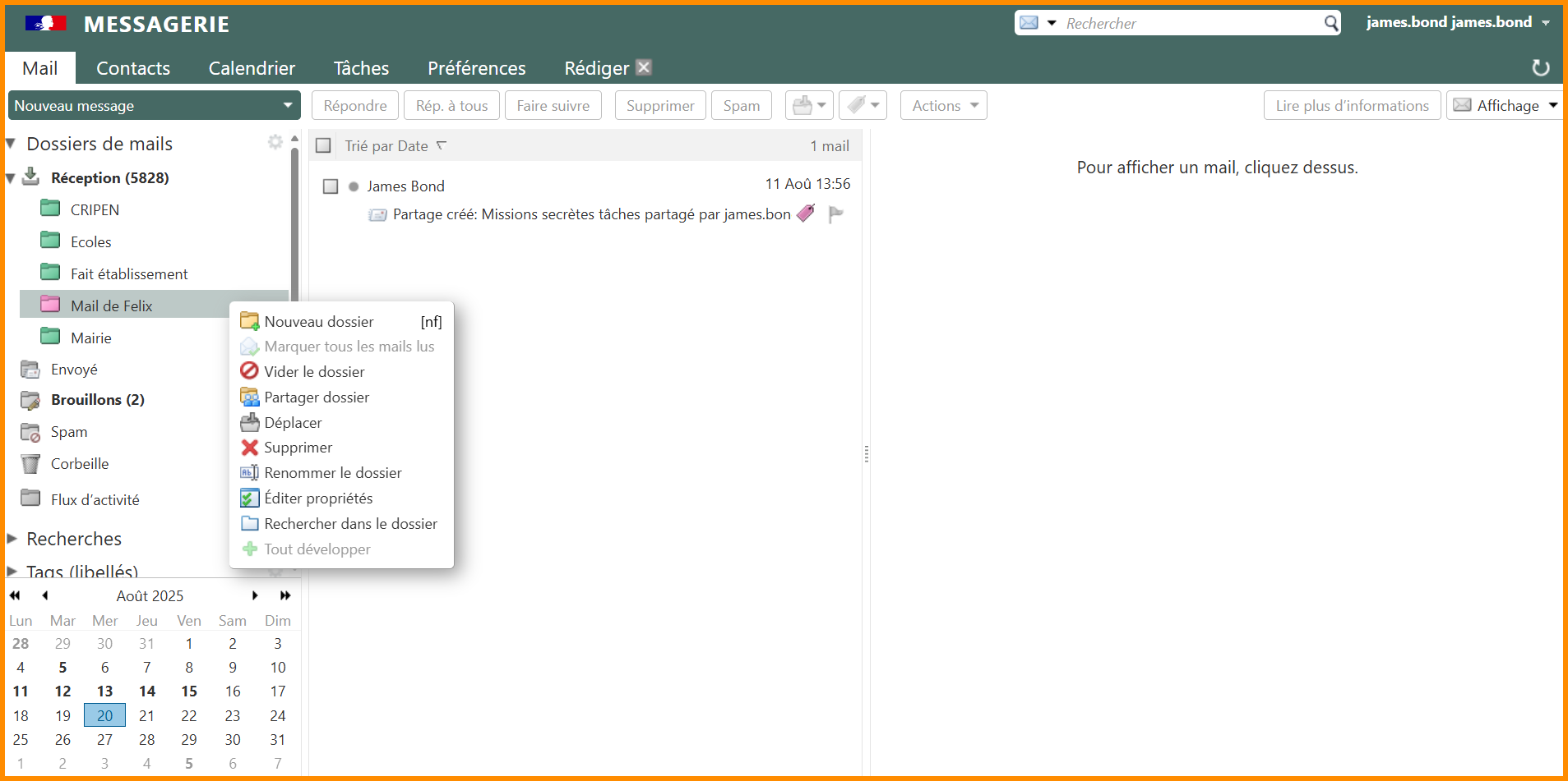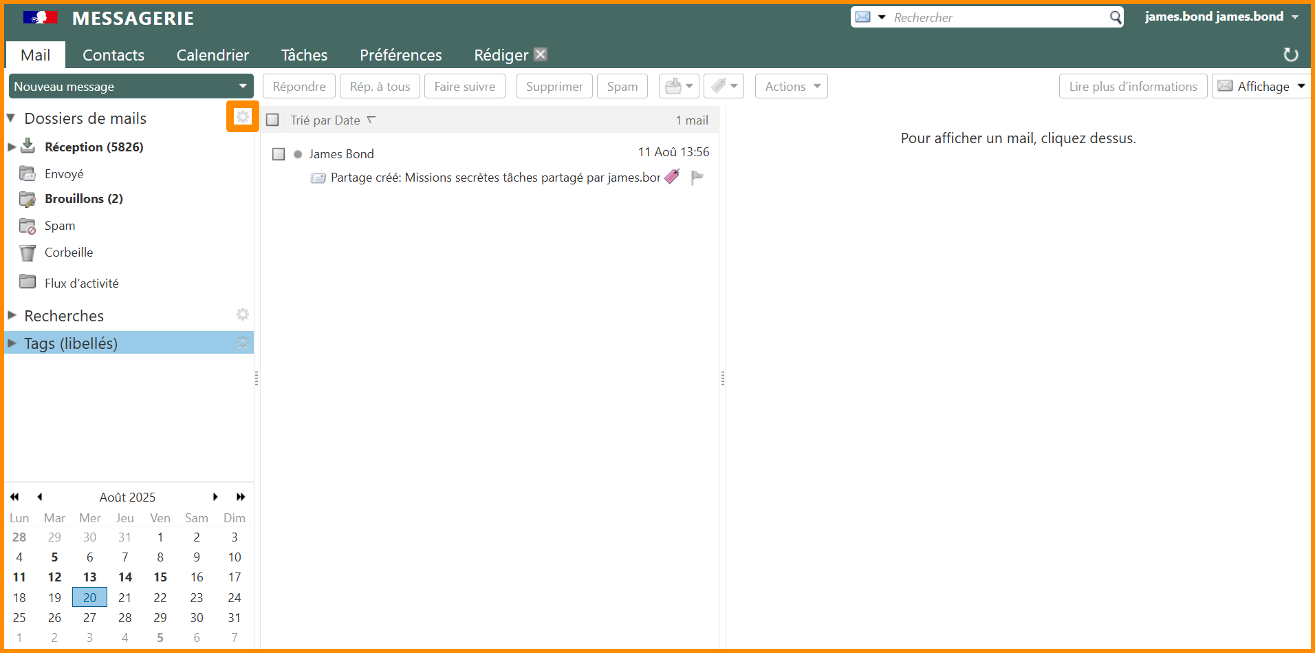 - Le dossier s'affiche dans l'architecture de vos mails.