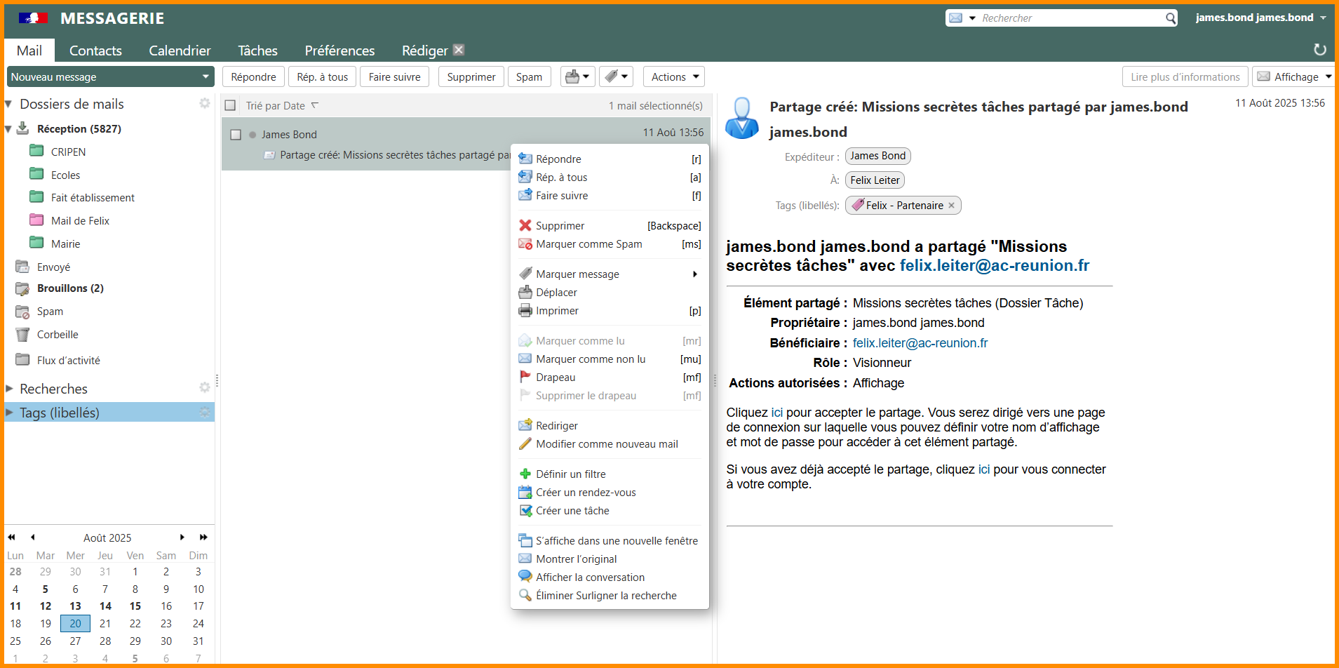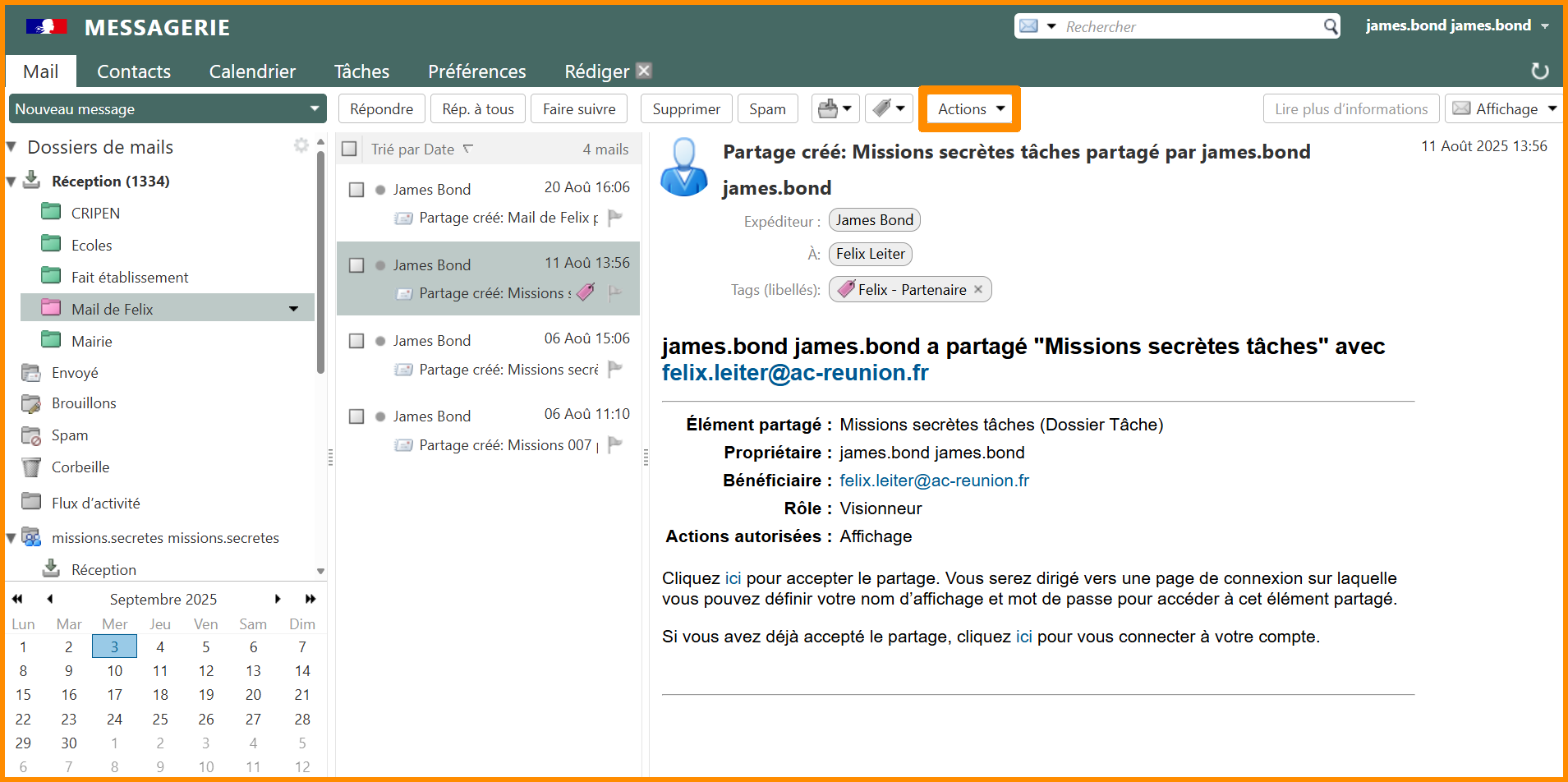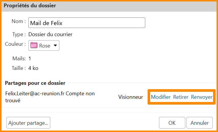 Corbeille » de votre boîte mail personnelle et de la boîte fonctionnelle partagée ne sont pas modifiables.