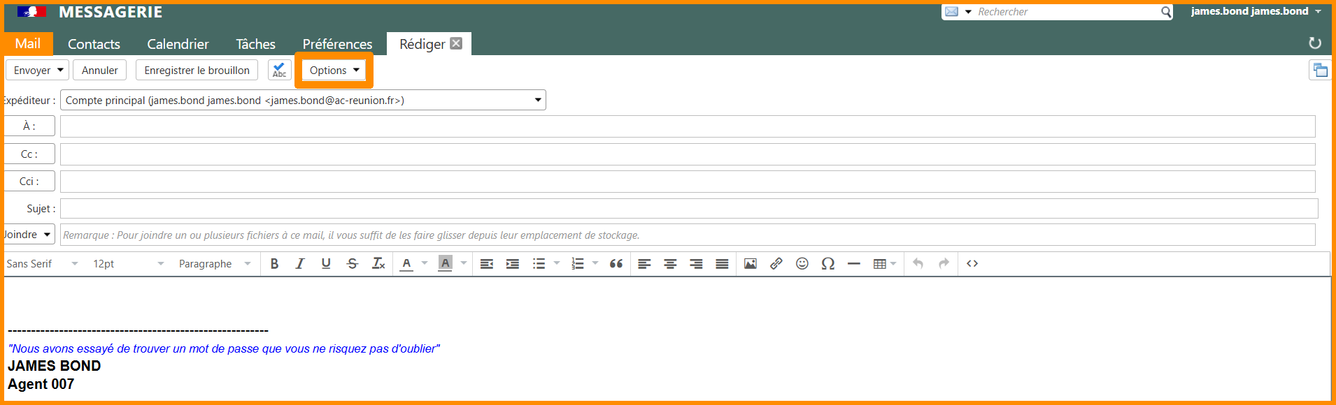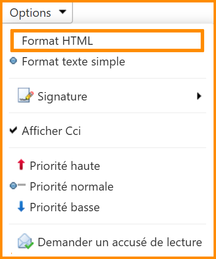 - Une barre d'outils apparait, au dessus de la rédaction du mail, vous permettant de styliser votre mail.