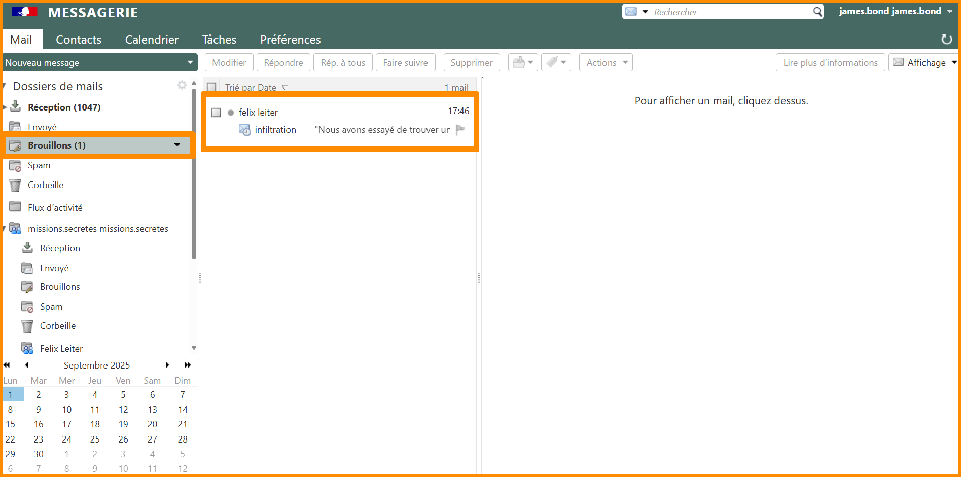 - Sélectionnez le dossier dans laquelle vous souhaitez enregistrer le mail