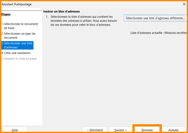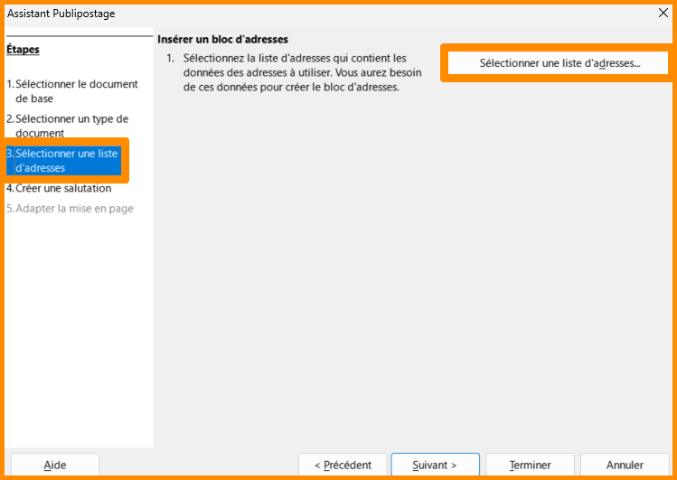 - À gauche, cliquez sur "3. Sélectionner une liste d'adresses".