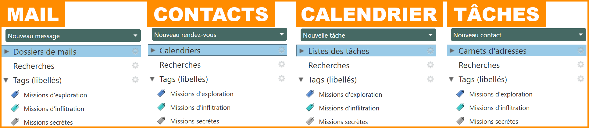 Ajouter un tag à un élément (Mail / Contact / Tâches / Calendrier)