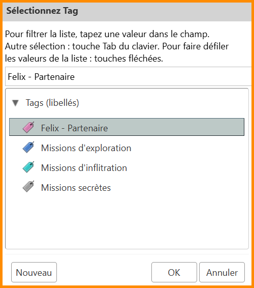 - L'onglet n'affiche que les éléments avec le tag sélectionné.