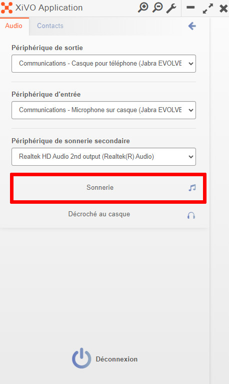 Il se peut que le nom et l’icône soient différents selon que vous ayez connecté un casque et selon le type de poste que vous possédez |