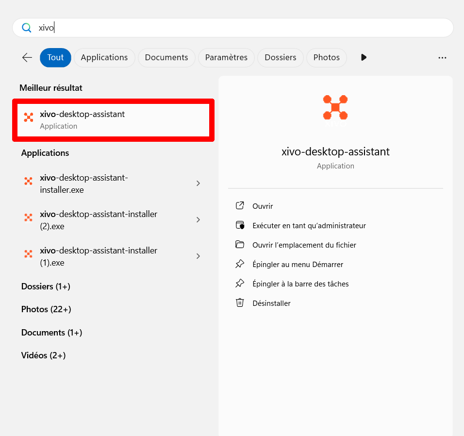 Ouvrir l'application XIVO