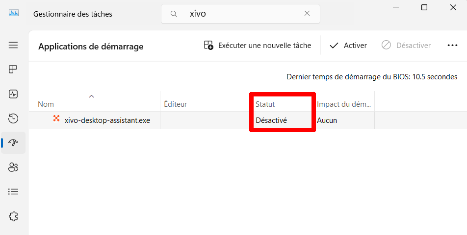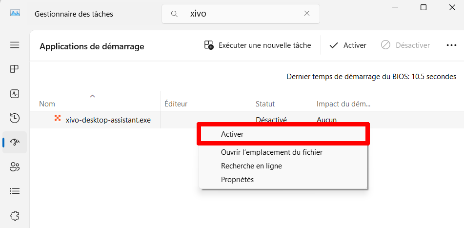 Activer / Désactiver l'ouverture de Xivo au démarrage