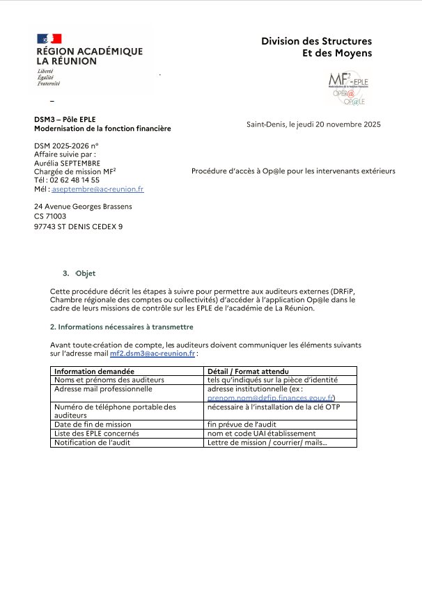 Procédure d’accès à Op@le pour les intervenants extérieurs